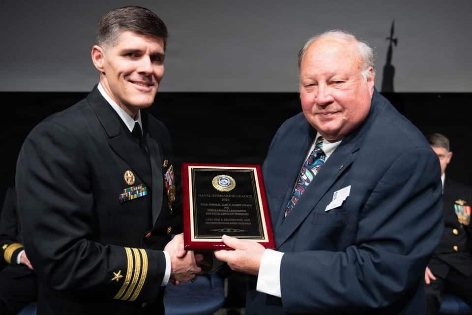 Darby Kelvington 10 February 2026 CAPT Beam presents the RADM Jack Darby award to the 2025 awardee, CDR Luke E. Kelvington, USN